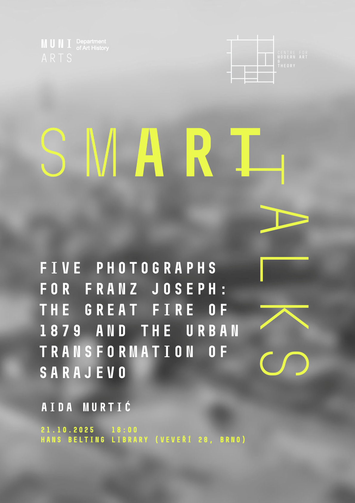 We are delighted to invite you to the second SMArt Talks lecture of the autumn semester, which will be delivered by Aida Murtić, joining Brno as a visiting researcher within the Visiting Research Fellowship program organised by the Centre for Modern Art & Theory. The lecture will take place on Tuesday, the 21st of October 2025, at the Hans Belting Library at 18:00.